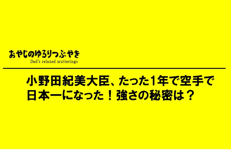 今回の総裁選で、小野田大臣はチームサナエとして高市首相を支援したそうですが、その高市総理が若い頃にパンクバンドのドラマーをしていたと言うことで、それを支える小野田大臣が格闘技の達人。