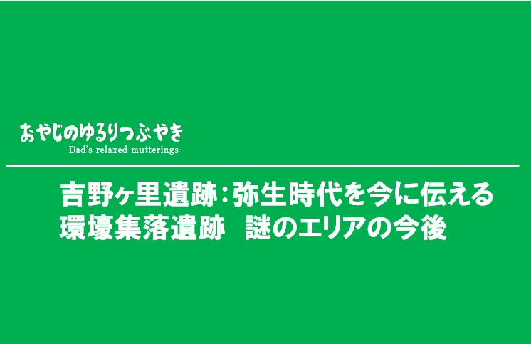 吉野ヶ里遺跡が発見された当時、邪馬台国との関係が話題になったことを記憶している方も多いのと思います。邪馬台国といえば、場所をめぐってさまざまな説が語られてきた、日本史の中でも特にロマンを感じさせる存在です。私自身も、その話題を通じて吉野ヶ里遺跡という名前を強く意識するようになりました。