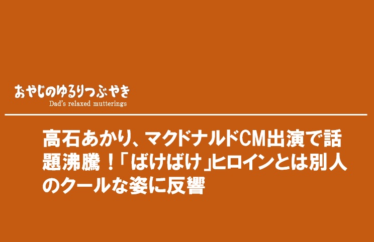 2025年12月16日、現在NHK連続テレビ小説「ばけばけ」でヒロイン・松野トキを演じている高石あかりさんが、自身のInstagramとXを更新し、マクドナルドのテレビCMに出演することを報告しました。「マクドナルドのTVCMに出演させていただいています。自分にとっては夢のような時間でした」とコメントし、福岡TVエリア限定で放映中のCMへの出演を明かしました。