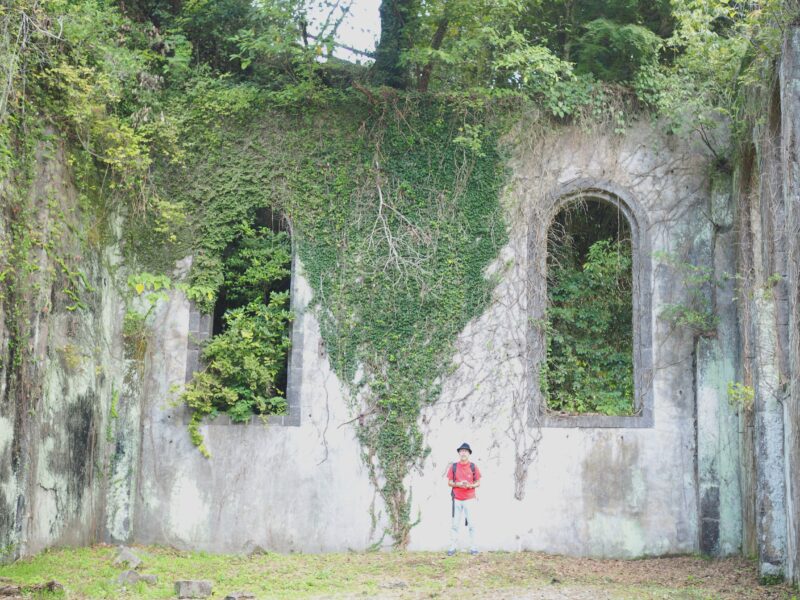 苔むしたコンクリートの建物と水しぶきを上げる滝が織りなす光景は、どこかノスタルジックで、時間が止まったかのような雰囲気を感じさせます。