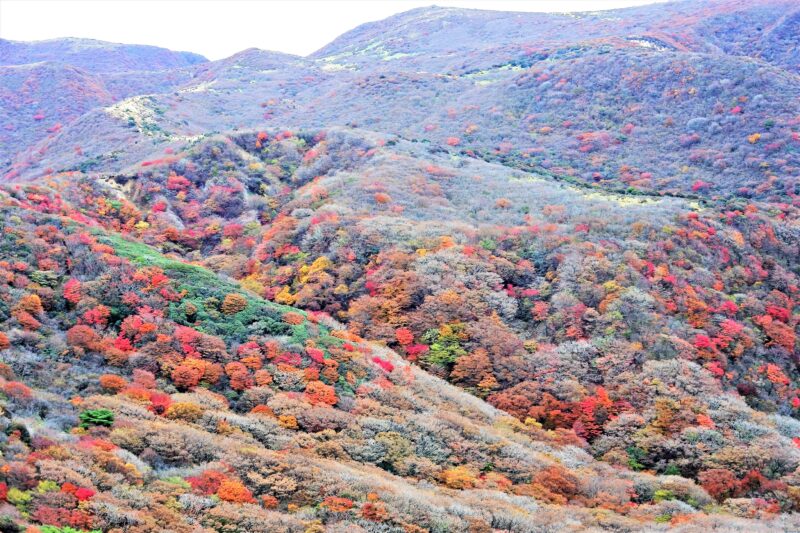 特に大船山や沓掛山周辺では、山一面が赤や黄色に色づき、美しい景色が広がります。 紅葉の時期には登山をしない観光客も多く訪れ、久住連山の人気の高さを感じます。