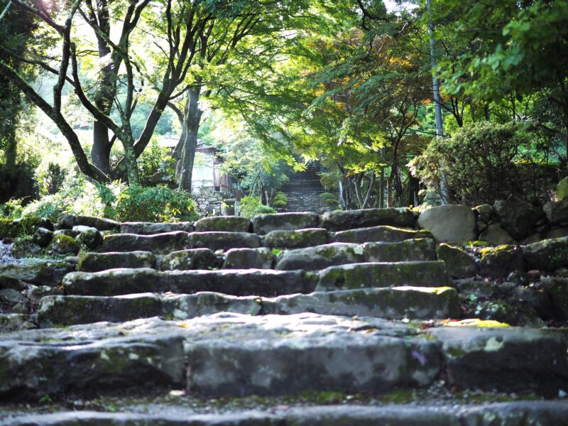 英彦山の登山道は、石段が続く特徴的な道です。