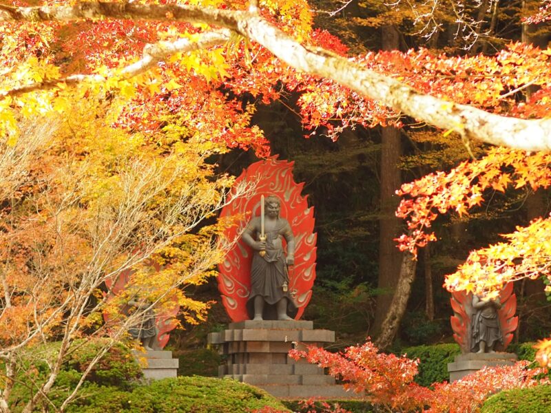 • 英彦山大神宮別院     紅葉の名所 不動明王と紅葉の対比→駐車場有