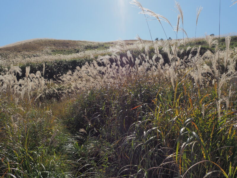 秋はススキが一面に広がり、